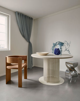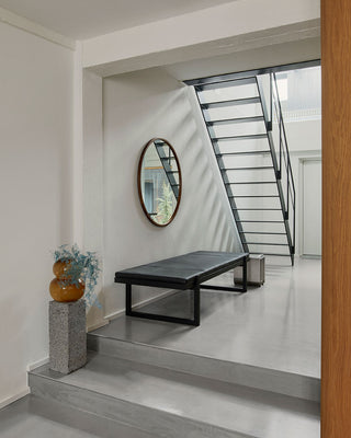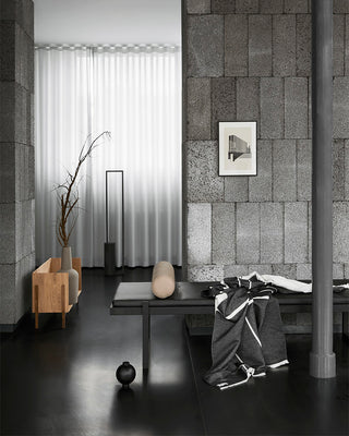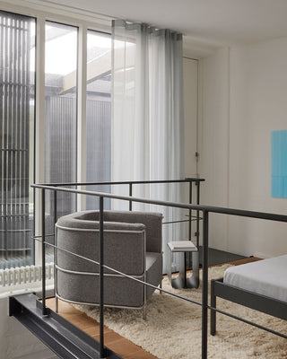 Kim Grenaa fra Grenaa Creative stod for indretningen af én af lejlighederne, der byder på lyse rum, betongulve, egetræspaneler samt køkkener i stål og marmor. Indretningen omfatter et kurateret udvalg af designs fra Kristina Dam Studio, som komplementerer lejlighedens materialer på fineste vis.