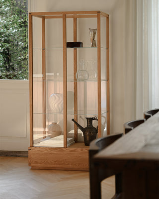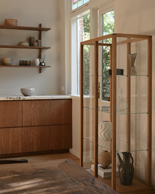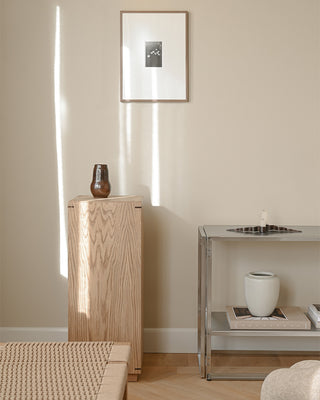 Hvert objekt i Michiels hjem er udvalgt med omtanke og balancerer vintage charme med nutidig enkelhed. Hans tilgang fremhæver rene linjer, skulpturelle former og genstande med følelsesmæssig betydning. Blandt højdepunkterne er Japanese Cabinet fra Kristina Dam Studio, som både fungerer som et funktionelt møbel og en udstillingsplads for hans mest personlige genstande.