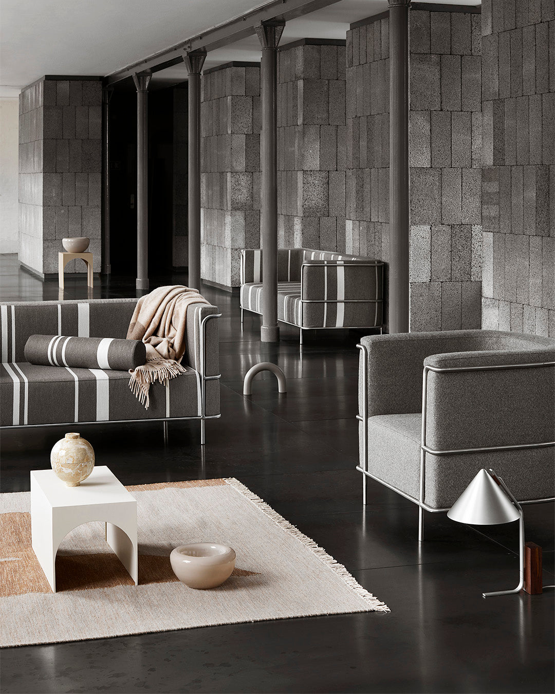 Modernist Lænestol har et grafisk og ukompliceret design, som giver et klart og imødekommende udtryk. Stolen tilfører en afslappet, enkel og tilgængelig atmosfære til hjemmet. Polstringen følger elegant de bløde kurver i den slanke ramme af rustfrit stål og danner både ryglæn og armlæn i én sammenhængende bevægelse. Lænestolen er en del af Modernist-kollektionen, hvor alle produkter er skabt til et moderne og elegant interiør.